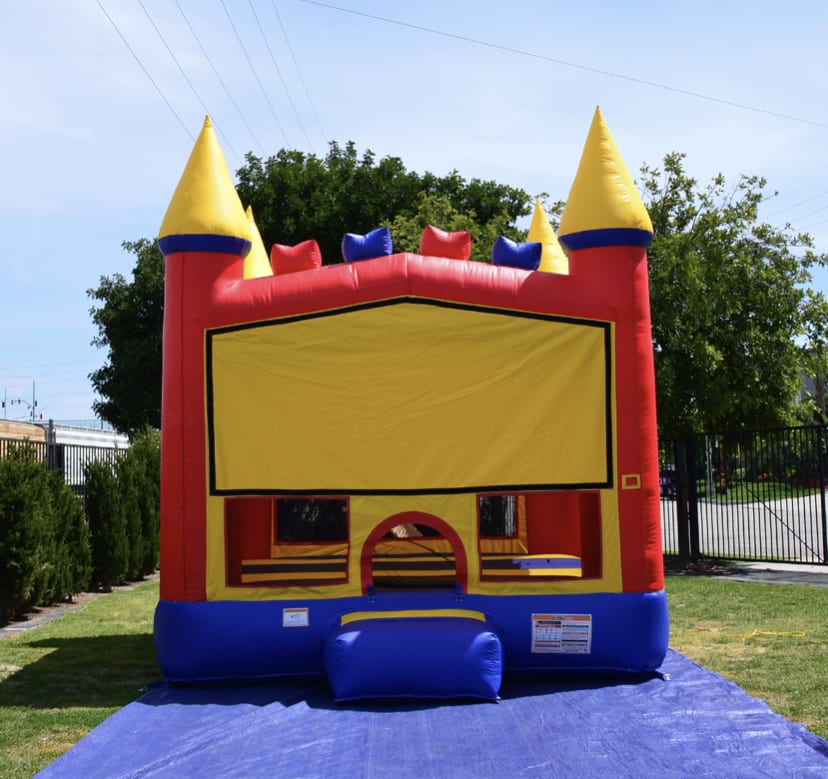 The Castle 13′ x 13′ Bounce House includes a basketball hoop and large bouncing floor. This unit is a unique rental choice for any party.