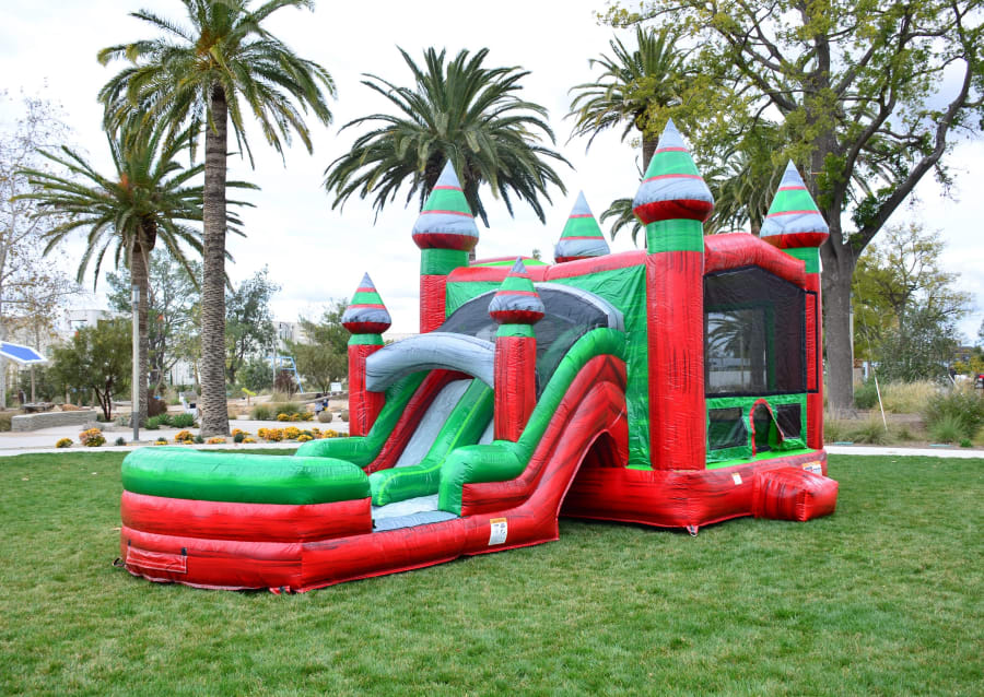The Amazon is a lot of fun in one inflatable! Its dual lane slide, bounce house, climbing wall, and basketball hoop means it can easily keep kids entertained! This combo is an all-season unit that you can enjoy all year long.