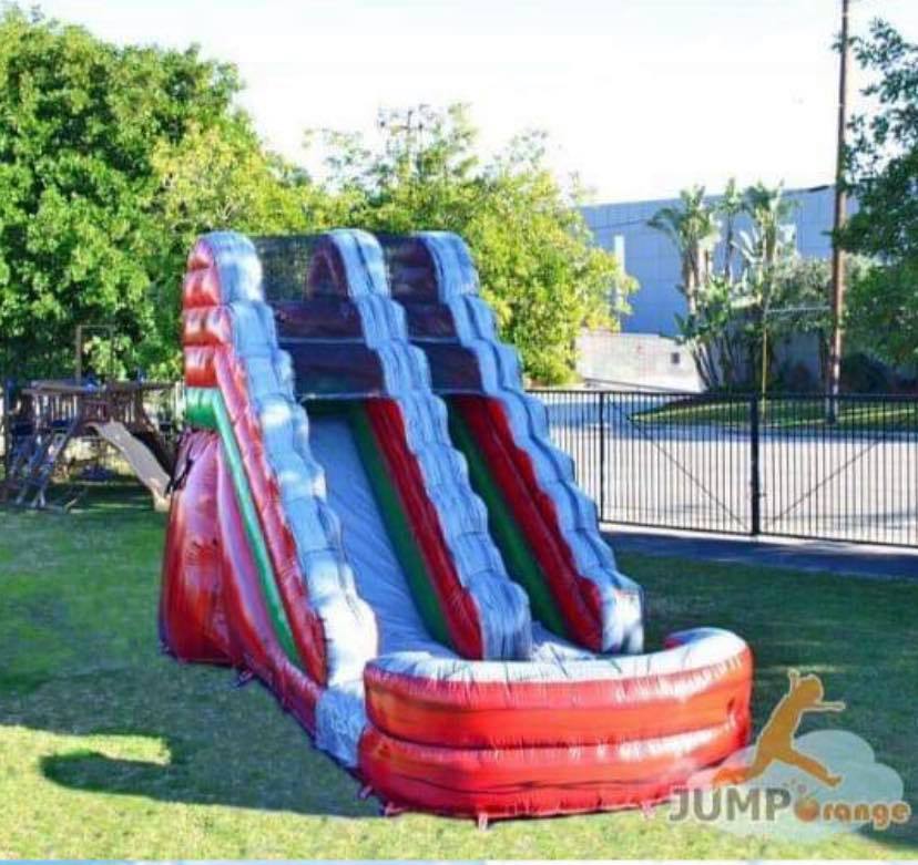 The Titanium 15 Ft Slide is an inflatable that stands out! The red, silver and green color scheme creates an eye-catching combination sure to draw attention at your next event!
